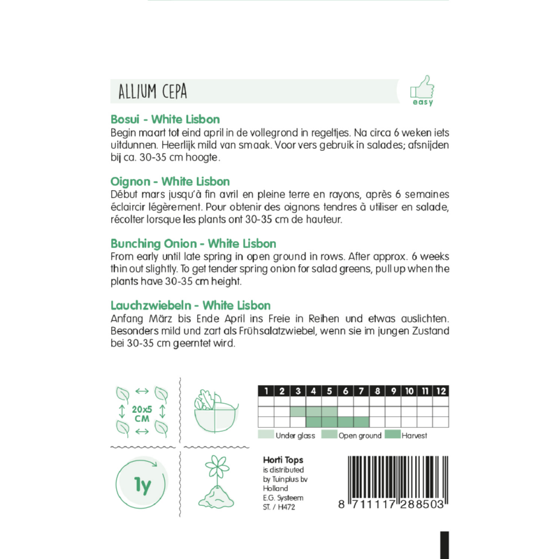 Begin maart tot eind april in de vollegrond in regeltjes. Na circa 6 weken iets uitdunnen. Heerlijk mild van smaak. Voor vers gebruik in salades; afsnijden bij ca. 30-35 cm hoogte.